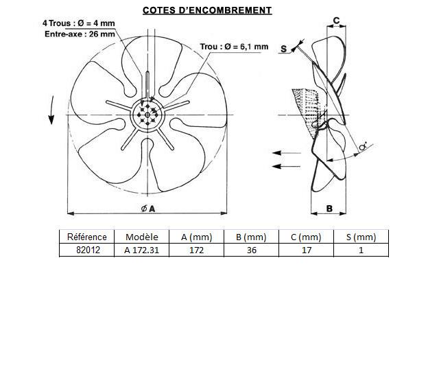 HELICE VENTILATEUR 5 PALES 31° Ø172 ASPIRANTE-XNW