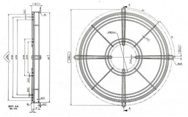 • Ventilateur hélicoïde 5 pales avec grille