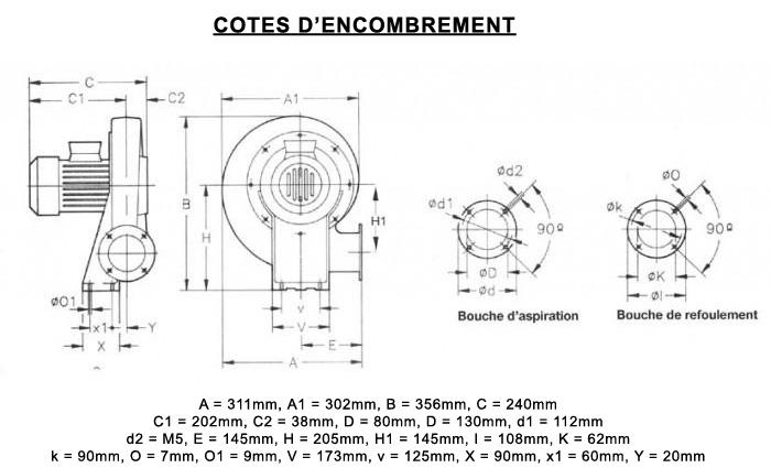• Dimensions d'entrée d'air : 80 mm