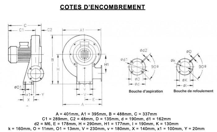 • Dimensions d'entrée d'air : 135 mm
