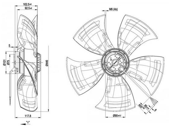• Ventilateur hélicoïde avec motohélice 5 pales faucilles