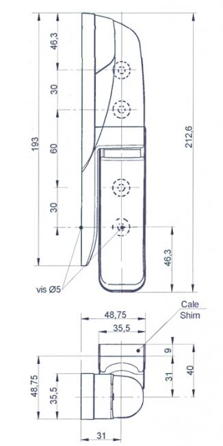 • Pour portes de 48 à 80 mm d'épaisseur, bourrelet compris, pour une ouverture de 180°