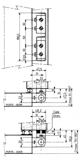 • Comptabile portes de 48 à 80 mm d'épaisseur, bourrelet compris, pour une ouverture de 180°
