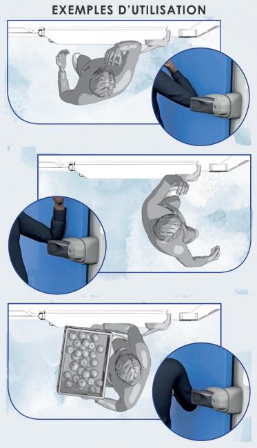 • Manoeuvrable avec le coude en mains libres