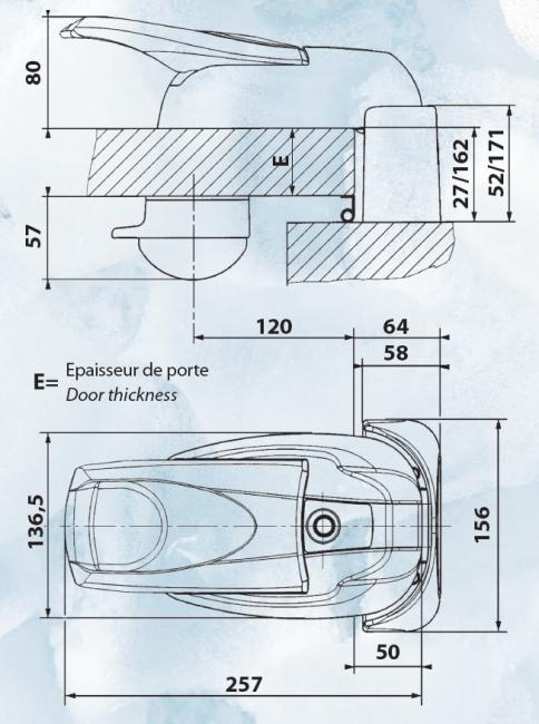 • Interchangeable avec la fermeture série 520/521 (en changeant la gâche)