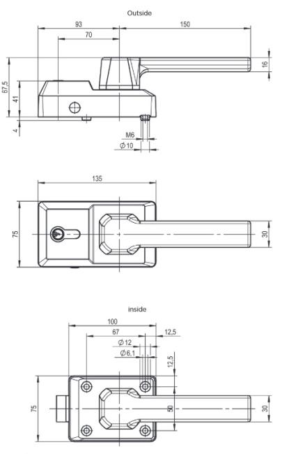 • Matériau poignée extérieure : Matière synthétique, coloris noir, avec mécanisme en acier