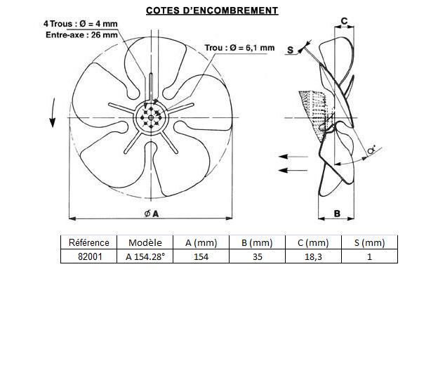 HELICE VENTILATEUR 5 PALES 28° Ø154 ASPIRANTE