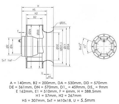 • Diamètre Ø (hélice ou turbine) : 560 mm