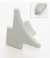 Lors de la réalisation d'un bord chanfreiné en arrondissant l'angle entre un rebord béton et une paroi verticale avec un profilé PVC à bavette, cet embout de forme triangulaire sert de pièce d'arrêt en bout de profilé pour une finition esthétique.