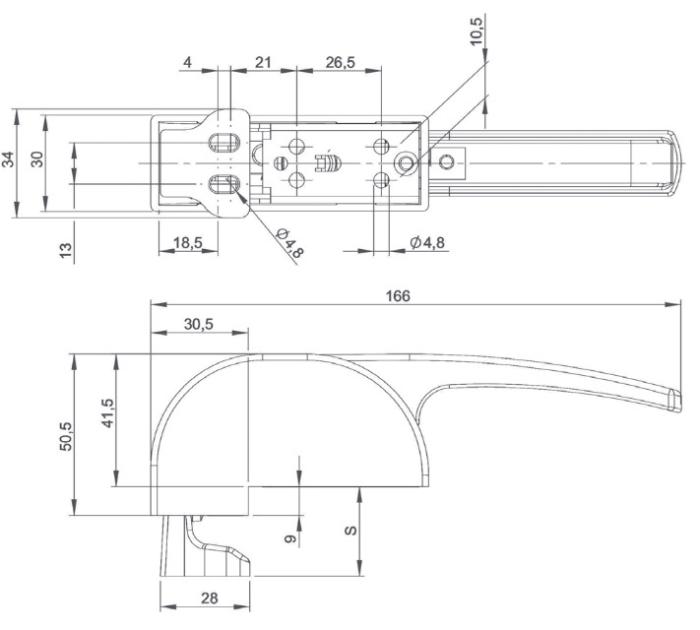 • Serrure à crochet, en applique pour portes en surépaisseur