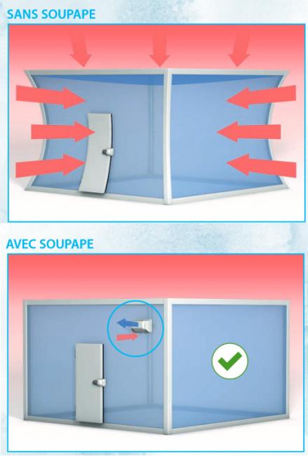 Lors des utilisations répétées d'ouverture et de fermeture des chambres froides négatives, les surpressions et dépressions sont répétées tout au long de la journée de travail.