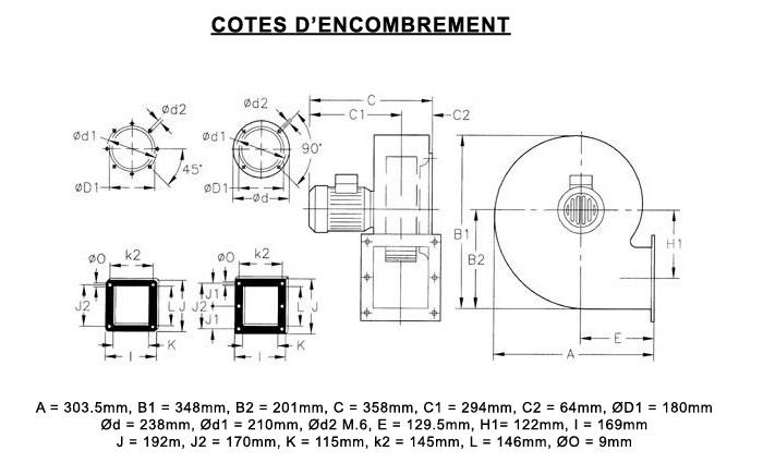 • Diamètre Ø (hélice ou turbine) : 180 mm